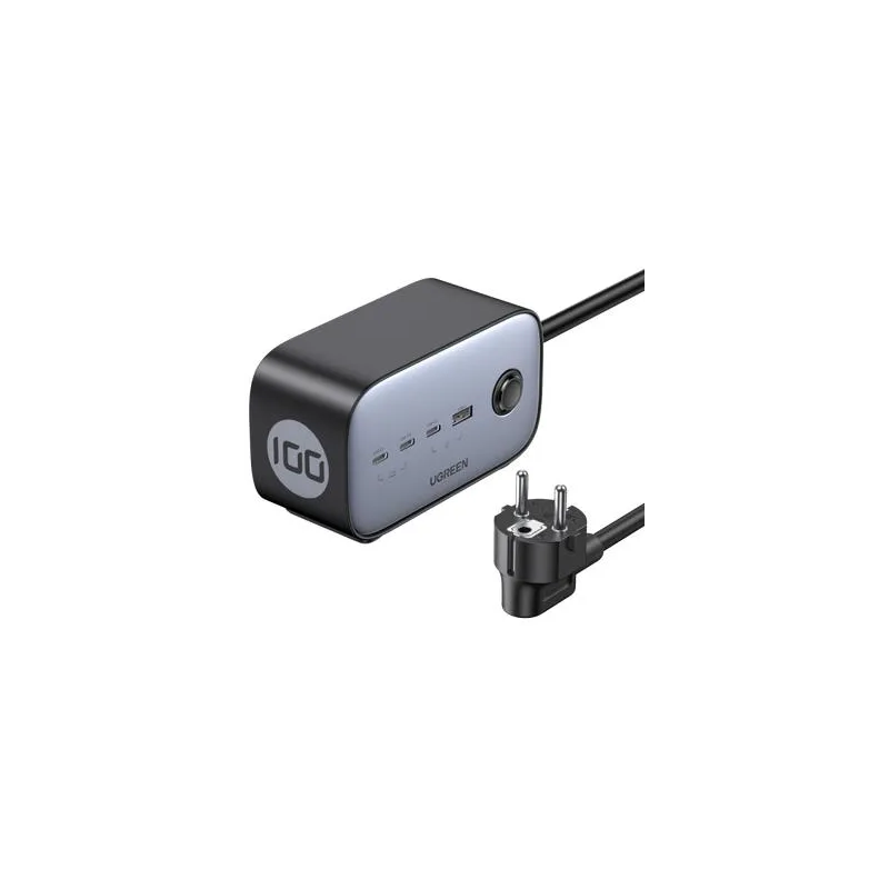 Cargador Ugreen DigiNest Pro con carga rápida, cuatro puertos USB tipo A y tipo C, salida AC tipo C, cable de 1,8 m y potencia de hasta 3680 W