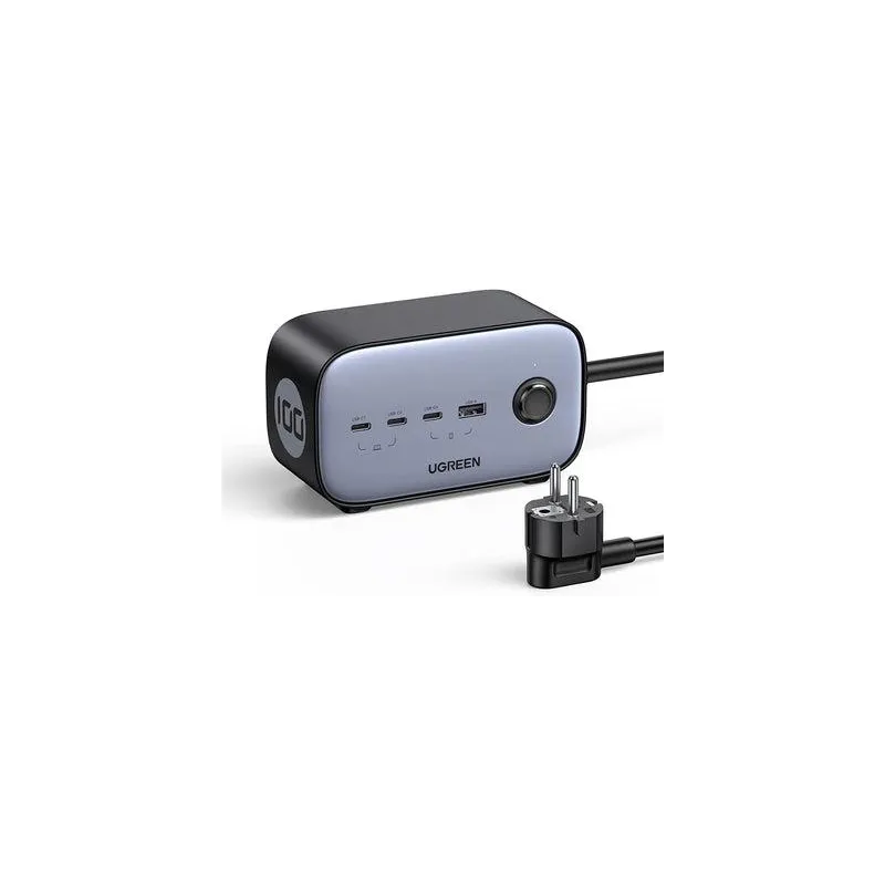 Cargador Ugreen DigiNest Pro con carga rápida, cuatro puertos USB tipo A y tipo C, salida AC tipo C, cable de 1,8 m