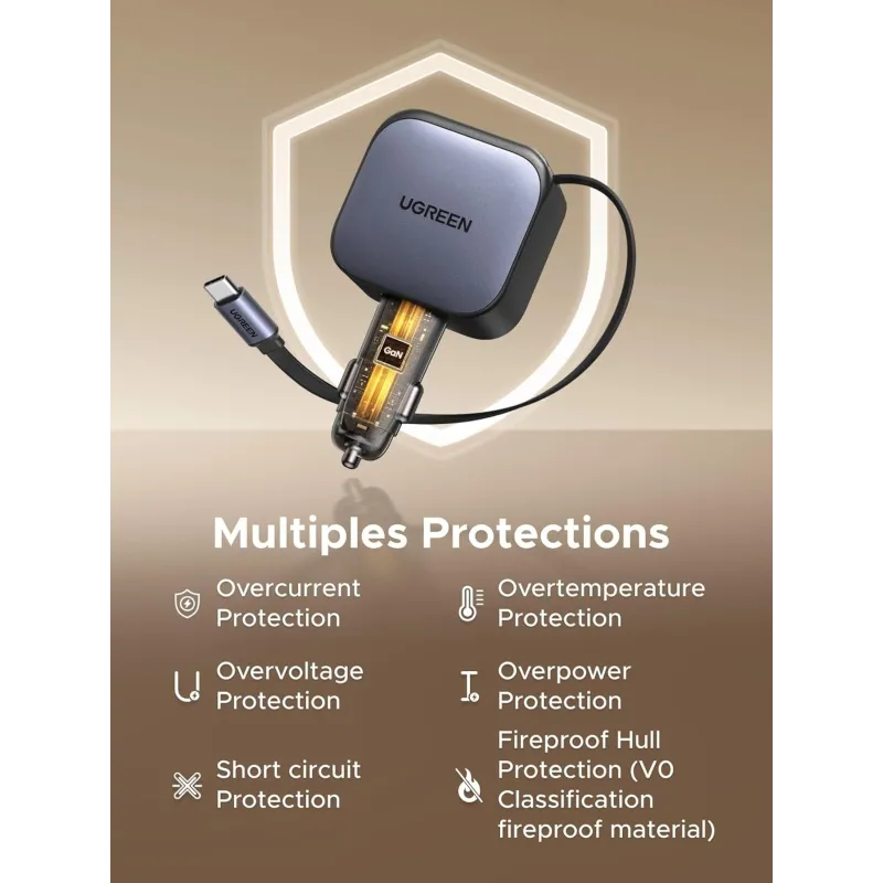 UGREEN Nexode EC603 Cargador de coche 90W con cable USB-C retráctil