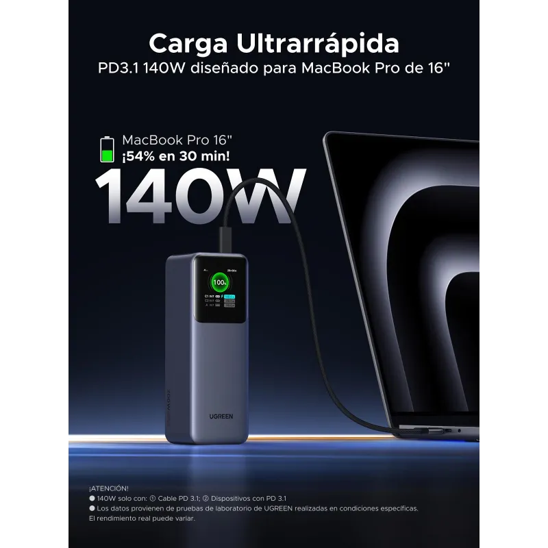 La UGREEN Nexode Power Bank 25000mAh 200W (35525B) gris se aprovecha mejor cuando el portátil carga por USB-C con Power Delivery y el cable USB-C está preparado para la potencia que vas a pedir. Si el cable o el portátil limitan la carga, el sistema ajustará la potencia a un nivel inferior.