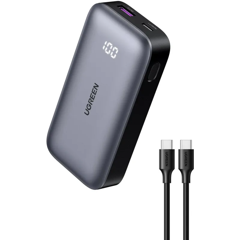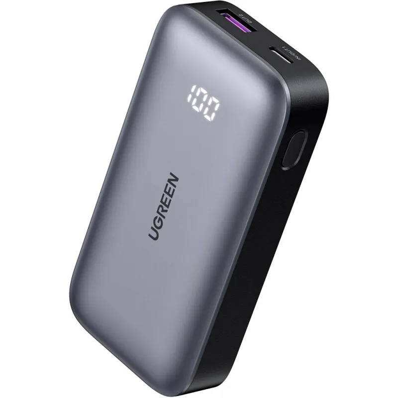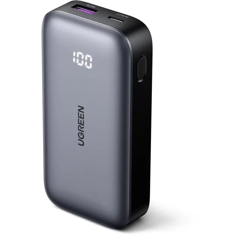 PowerBank Ugreen PB502-25185 en color gris, con diseño compacto y elegante, ofrece funcionalidad y estilo para cargar tus dispositivos con comodidad