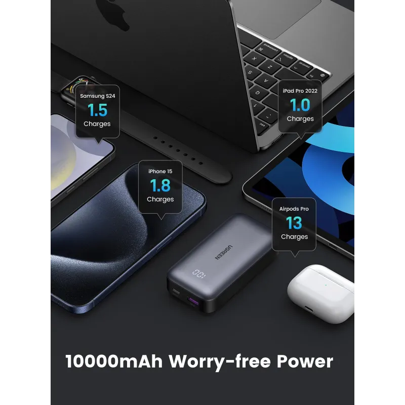El PowerBank Ugreen PB502-25185 ha sido diseñado pensando en la movilidad. Su diseño compacto permite llevarlo fácilmente en bolsos, mochilas o incluso en el bolsillo, sin que suponga una carga adicional. Esta característica lo convierte en el aliado perfecto para quienes se desplazan constantemente y necesitan una fuente de energía confiable. A pesar de su tamaño reducido, ofrece un rendimiento constante y eficiente, manteniéndose como una opción práctica para el día a día. Su estructura ha sido optimizada para ocupar el menor espacio posible sin comprometer su funcionalidad, lo que lo convierte en una elección inteligente para quienes priorizan la comodidad sin renunciar a la calidad.