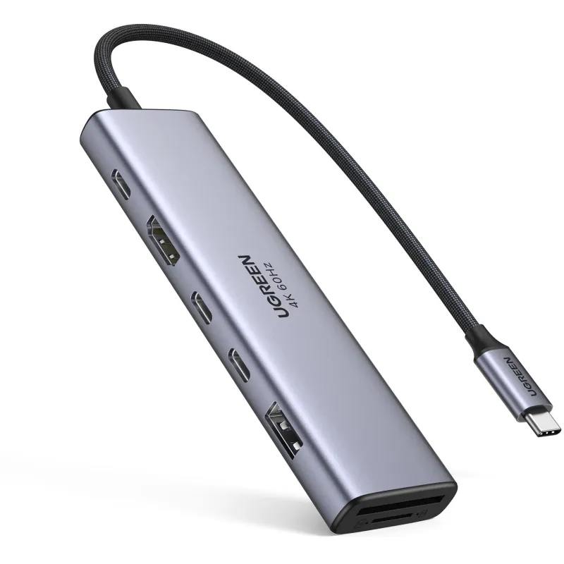 Docking Station Ugreen REVODOK 7-in-1 con puerto USB tipo C 3.2 Gen 1, lector de tarjetas SD integrado y diseño gris sin conexión Ethernet
