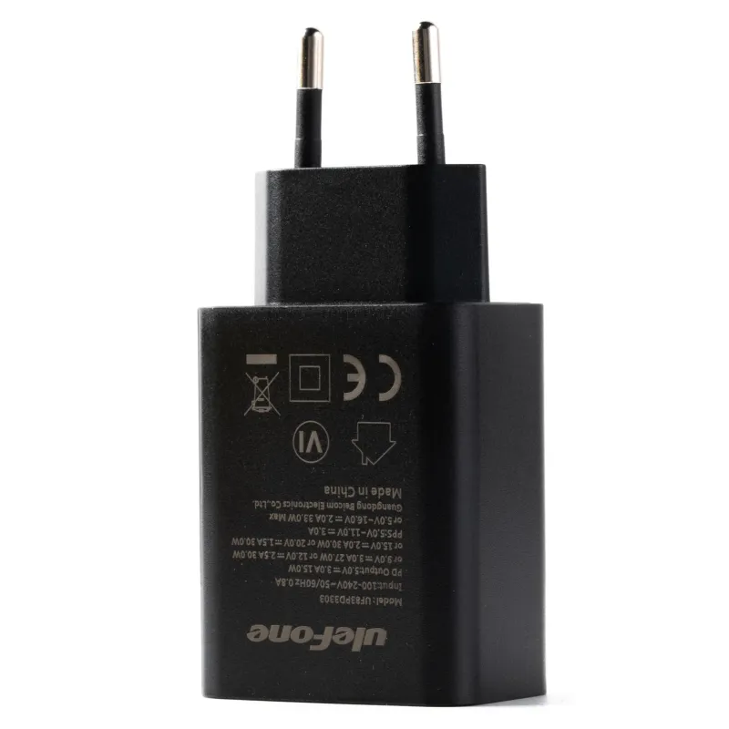 Cargador Smartphone Ulefone ULECHARGER33W con potencia 33W, carga rápida y conexión USB-C, diseño en color negro