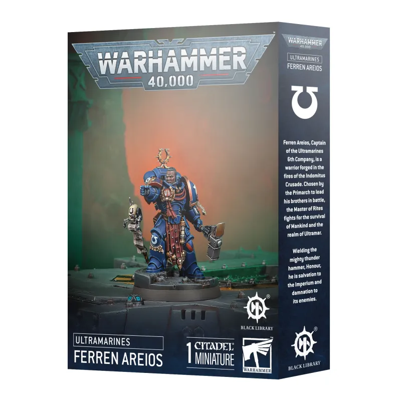 Ultramarines: Ferren Areios es una miniatura de personaje individual en plástico para ejércitos de Marines Espaciales del capítulo Ultramarines en Warhammer 40,000.