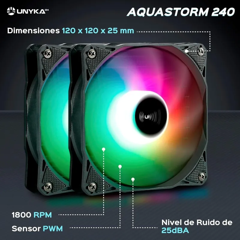 Unyka Aquastorm 240 ARGB Kit de Refrigeración Líquida 240mm Negro