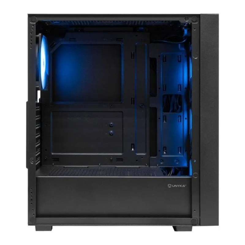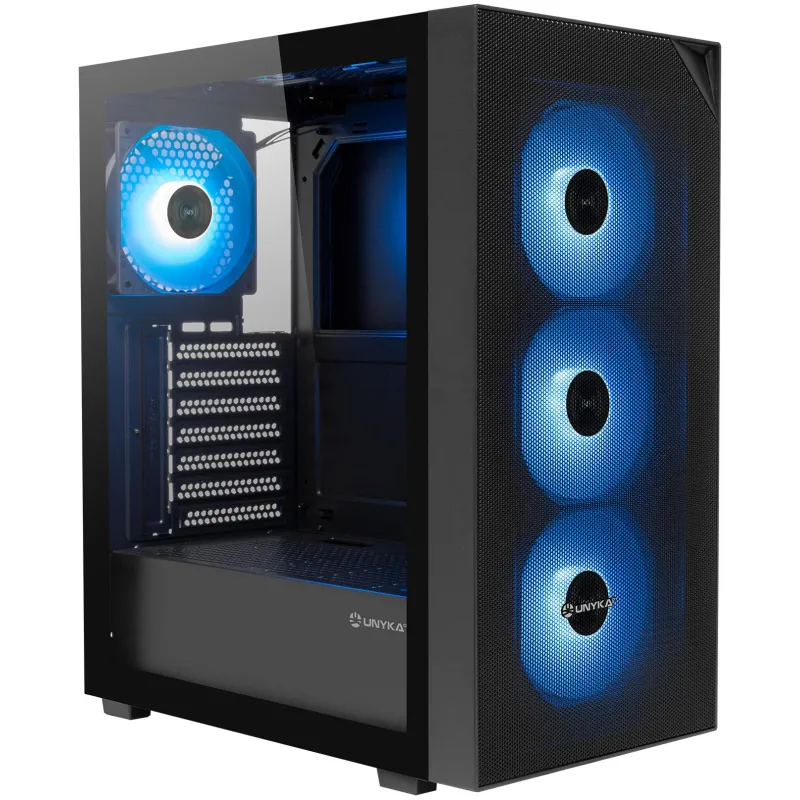Torre Unyka Revelat Mesh Compact Edition Gaming aRGB Negro con ventiladores 120 mm, vidrio templado lateral, gestión de cables y filtro antipolvo.