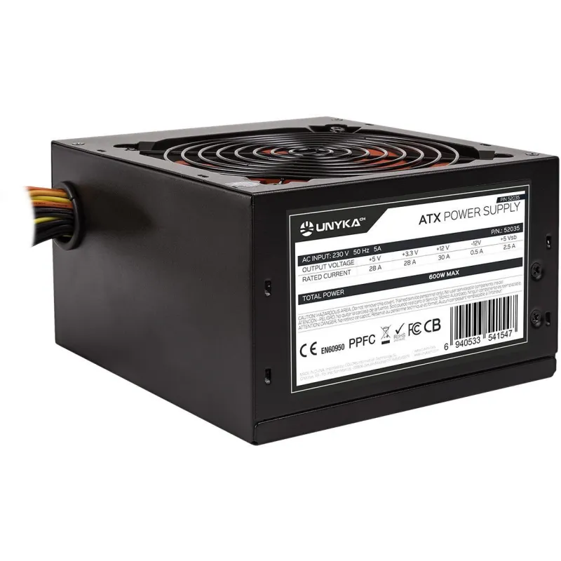 La fuente de alimentación ofrece una potencia total de 600 W y soporta un voltaje de entrada AC de 230 V con una frecuencia de 50 Hz, asegurando un rendimiento confiable y eficiente para su PC o servidor. Equipada con corrección del factor de potencia pasivo, esta PSU garantiza una estabilidad energética óptima. Además, cuenta con protecciones integrales contra sobretensión, sobrevoltaje, sobrecarga, sobrecalentamiento, cortocircuito y bajo voltaje, proporcionando una seguridad superior para tus componentes.