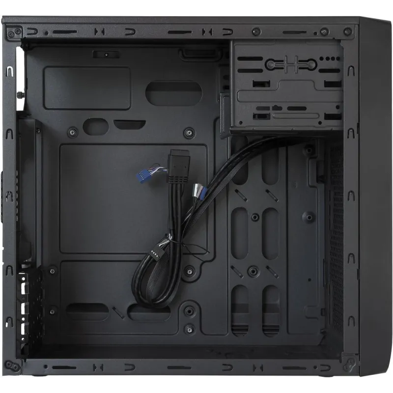 Este chasis de PC de formato torre, fabricado en metal SPCC de alta calidad, se presenta en un elegante color negro, destacando su robustez y estilo moderno. Es compatible con tarjetas madre de factor de forma micro ATX y ofrece una amplia capacidad de expansión con sus 4 ranuras de expansión. Dispone de 2 puertos de 3.5", 1 puerto de 5.25", 3 bahías de 2.5" y una bahía interna de 3.5", además de un receptáculo externo de 5.25". Los indicadores LED integrados permiten un monitoreo fácil y rápido del estado del sistema.