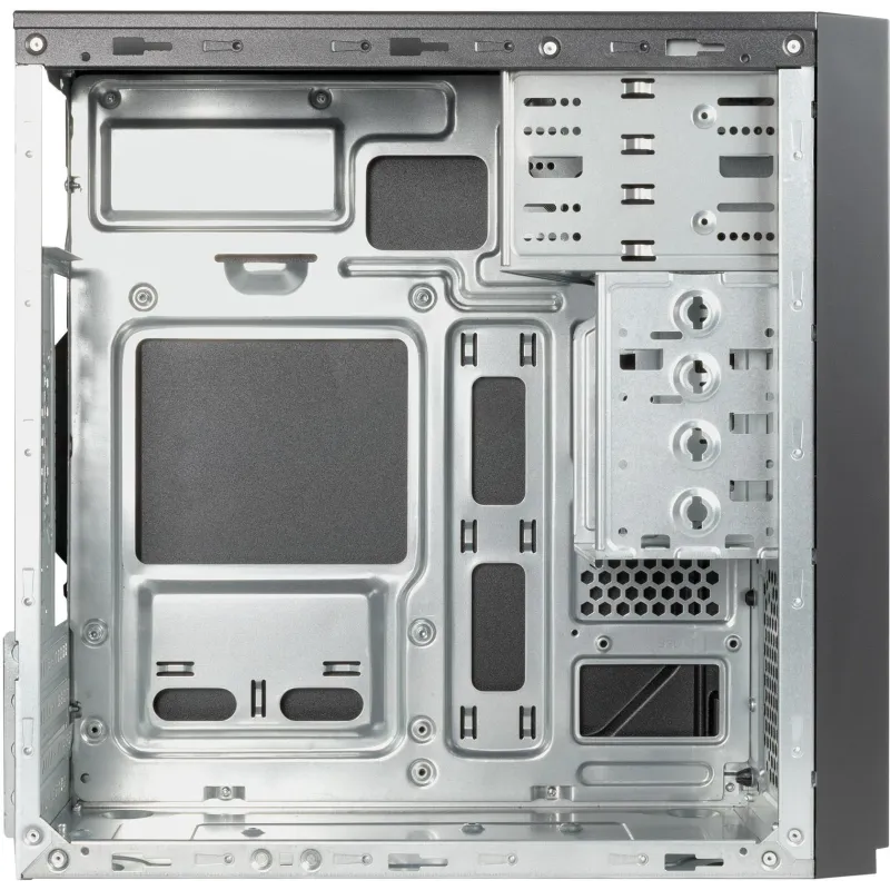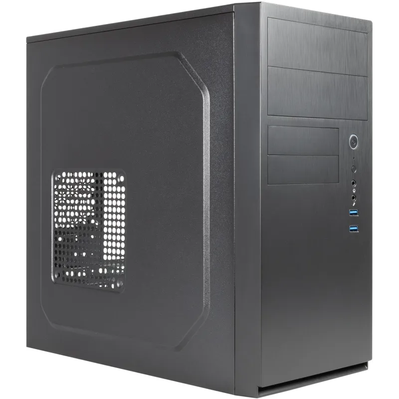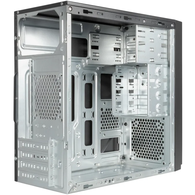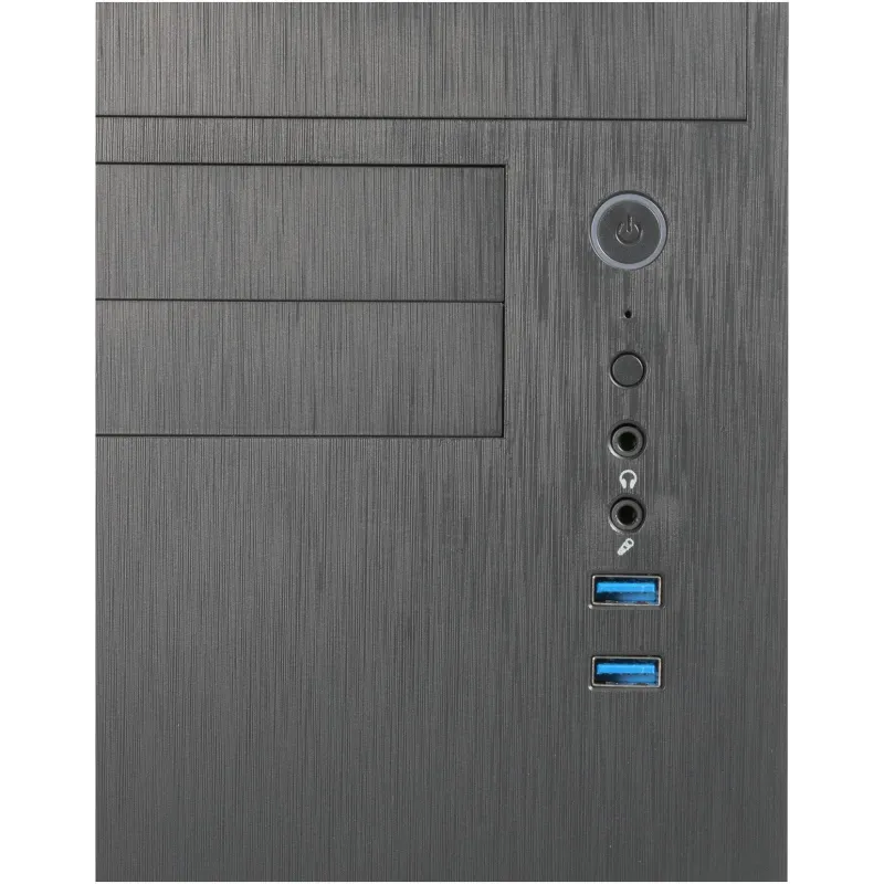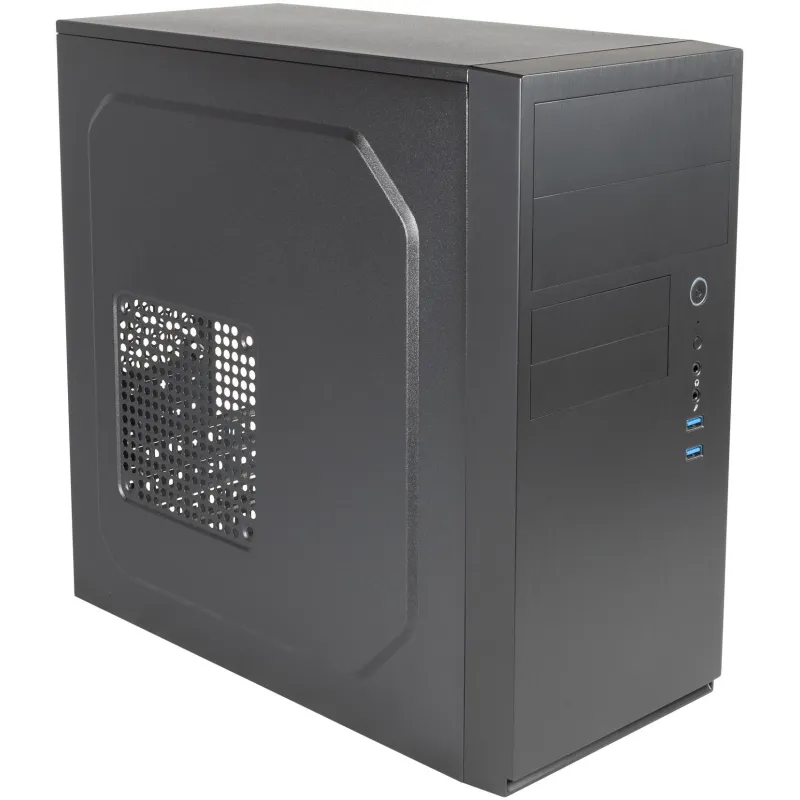 MÁXIMA EFICIENCIA EN UN DISEÑO COMPACTO: La estructura robusta y elegante de este equipo combina materiales de alta calidad como ABS, Metal y SGCC, ofreciendo una resistencia excepcional en un formato micro torre. Su apariencia en color negro se integra a la perfección en cualquier ambiente, ya sea en el hogar o la oficina, proporcionando una estética moderna y profesional. Con soporte para tarjetas madre micro ATX y múltiples puertos y bahías, este dispositivo se adapta a diversas necesidades de expansión y almacenamiento, incluyendo siete puertos de 3.5", dos puertos de 5.25" y cuatro ranuras de expansión. El diseño sin ventana lateral prioriza la funcionalidad, permitiendo un entorno de trabajo tranquilo y enfocado.
