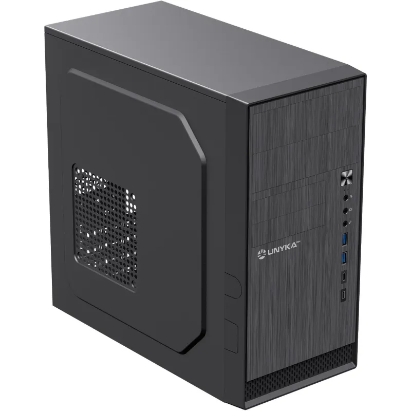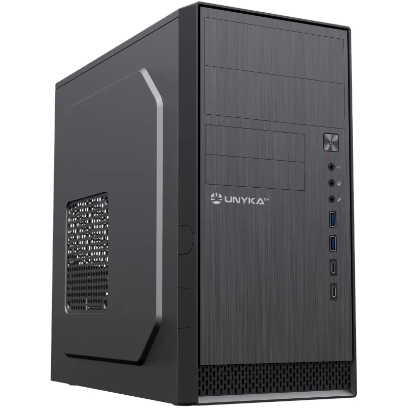 FRONTAL FUNCIONAL: Si buscas una caja Micro ATX compacta y funcional, la AERO C12 de UNYKAch es una excelente opción. Esta caja cuenta con conexiones para dos puertos USB 3.0 y dos puertos USB Type C 2.0, lo que permite una rápida conexión de periféricos y dispositivos externos de alta velocidad. Además, la caja también cuenta con conexiones para HD Audio, micrófono y combo para ahorrar cables, para una experiencia de audio de alta calidad.