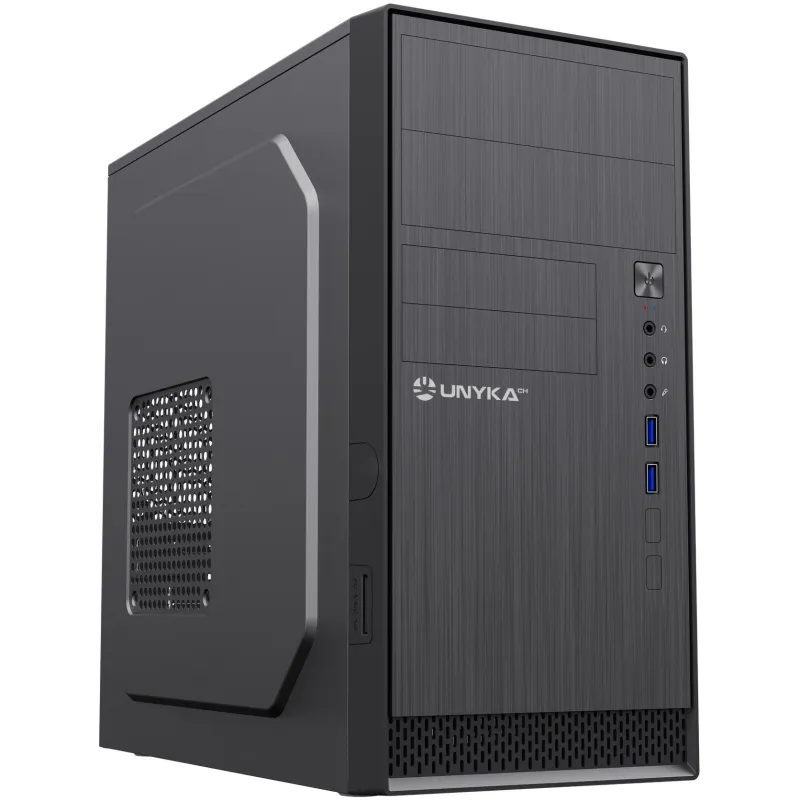 SI BUSCAS UNA CAJA MICRO ATX CON UN DISEÑO DISCRETO Y CLÁSICO: La UNYKAch AERO C12 V1 es la elección perfecta para ti. Este estuche presenta un elegante panel frontal con efecto de aluminio cepillado. Además, el AERO C12 V1 incluye conexiones para dos puertos USB 3.0 y un lector de tarjetas SD, lo que permite una fácil conexión de periféricos de alta velocidad y dispositivos externos. También incluye conexiones para Audio HD y micrófono para una experiencia de audio de alta calidad.