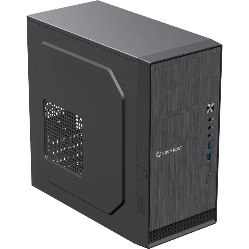 FRONTAL FUNCIONAL: Si buscas una caja Micro ATX compacta y funcional, la UNYKAch AERO C12 V1 es una excelente opción. Este estuche cuenta con conexiones para dos puertos USB 3.0 y un puerto para lector de tarjetas SD, lo que permite una conexión rápida de periféricos de alta velocidad y dispositivos externos. Además, el estuche también incluye conexiones para audio HD, micrófono y combo para administración de cables, brindando una experiencia de audio de alta calidad.