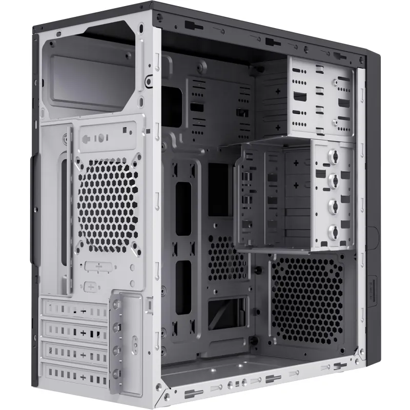 ADAPTABLE A TUS NECESIDADES: Con soporte para tarjetas madre micro ATX y una variedad de bahías y puertos, esta torre es una solución versátil para tus necesidades informáticas. Desde unidades de almacenamiento hasta tarjetas de expansión, esta torre lo tiene todo para tus proyectos domésticos u oficinales.
