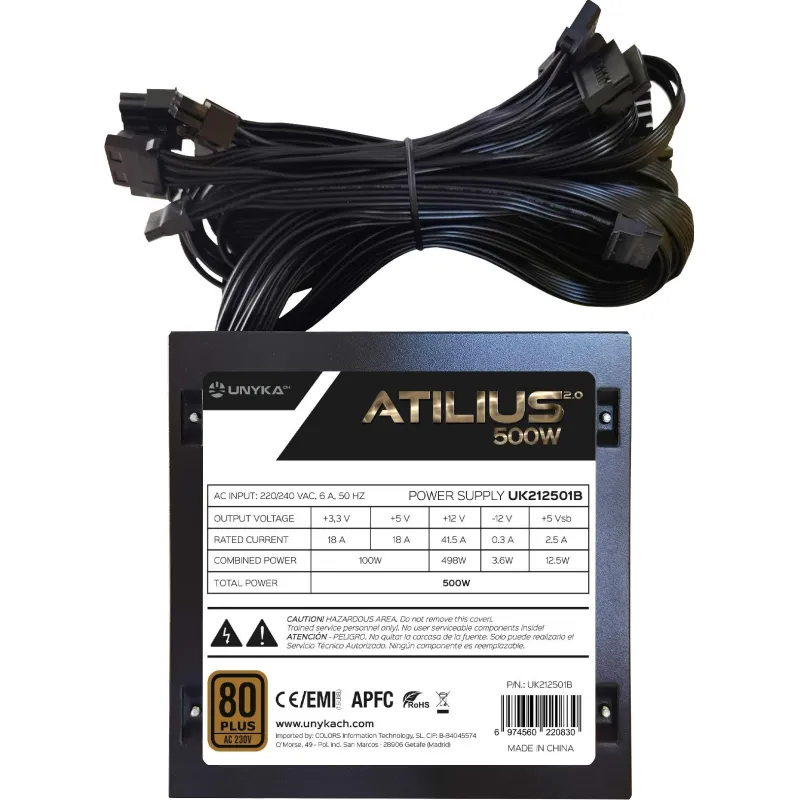 POTENCIA REAL: Lo más destacado de las fuentes de alimentación ATILIUS 2.0 de UNYKAch es su potencia real de 500W, lo que significa que ofrecen una entrega de potencia precisa y estable sin fluctuaciones ni caídas que puedan afectar al rendimiento del equipo. Esto se debe a su diseño de circuitos inteligente y a la incorporación de componentes de alta calidad que garantizan un suministro de energía constante y seguro.