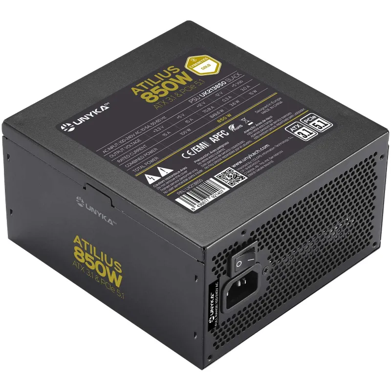 Fuente UNYKAch ATILIUS Black 850W 80 Plus Gold ATX 3.1 para montajes actuales