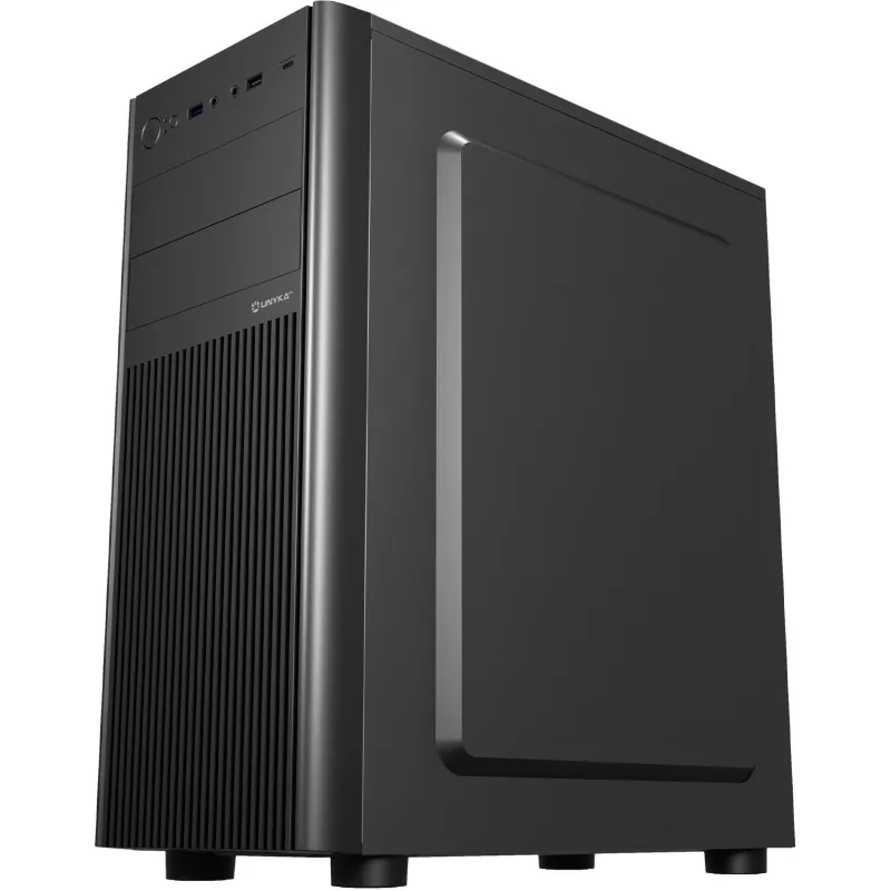 Torre Unykach Caja ATX UK8026 Negro es una solución versátil y robusta diseñada para quienes buscan un equilibrio entre funcionalidad y diseño en su equipo de sobremesa. Fabricada en material SGCC, esta torre ofrece una estructura resistente y duradera, ideal para entornos de hogar u oficina. Su factor de forma Midi Tower permite una excelente compatibilidad con placas base ATX, micro ATX e ITX, lo que facilita una gran variedad de configuraciones. Incorpora bahías internas de 2.5 pulgadas que permiten instalar hasta cuatro unidades SSD, mejorando el rendimiento del sistema y optimizando el espacio interno. Además, cuenta con un sistema de gestión de cables que ayuda a mantener el interior ordenado, favoreciendo la circulación del aire y el mantenimiento del equipo.
