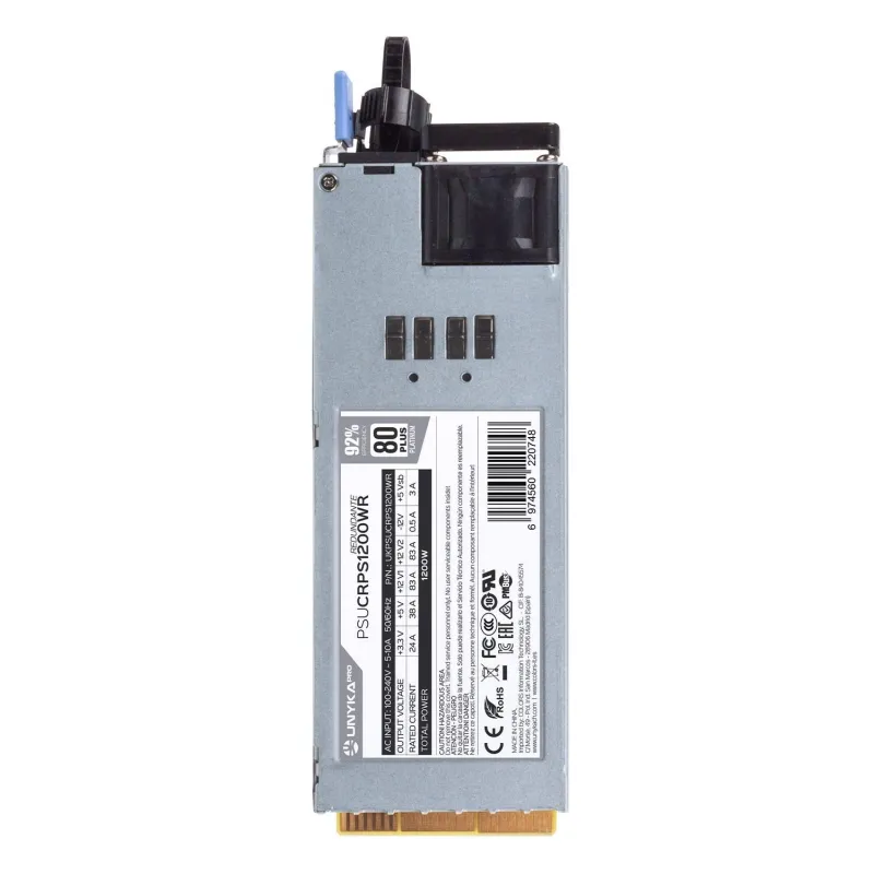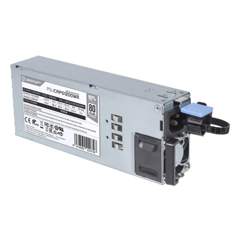 Fuente de Alimentación Unykach CRPS de 1200 W de Potencia, certificación 80 Plus Platinum, 3 años de Garantía