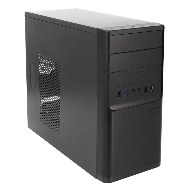 Este gabinete de PC destaca por su material de construcción en metal SGCC y su factor de forma torre, lo que asegura durabilidad y robustez en un elegante color negro. Diseñado para soportar tarjetas madre micro ATX, ofrece una gran capacidad de expansión con 3 puertos de 3.5”, 2 puertos de 5.25” y 1 bahía de 2.5”, además de 4 ranuras de expansión. Aunque no incluye ventana lateral, permite una configuración interna óptima con una altura máxima de CPU de 14 cm y una longitud máxima para tarjetas gráficas de 32 cm. Certificado con CE y RoHS, garantiza seguridad y cumplimiento ambiental.
