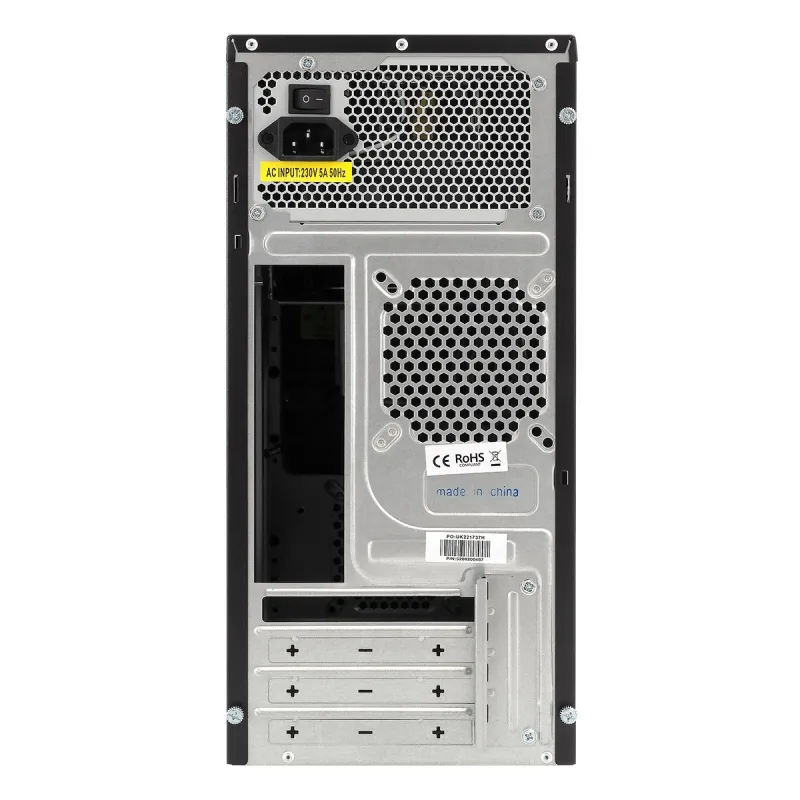 FUENTE DE ALIMENTACIÓN INCLUIDA: El sistema viene equipado con una fuente de alimentación de 500 W, compatible con factores de forma ATX, proporcionando una potencia suficiente para alimentar todos los componentes esenciales. Esta inclusión de fábrica facilita la puesta en marcha y asegura que el equipo esté listo para funcionar al máximo rendimiento desde el primer momento.