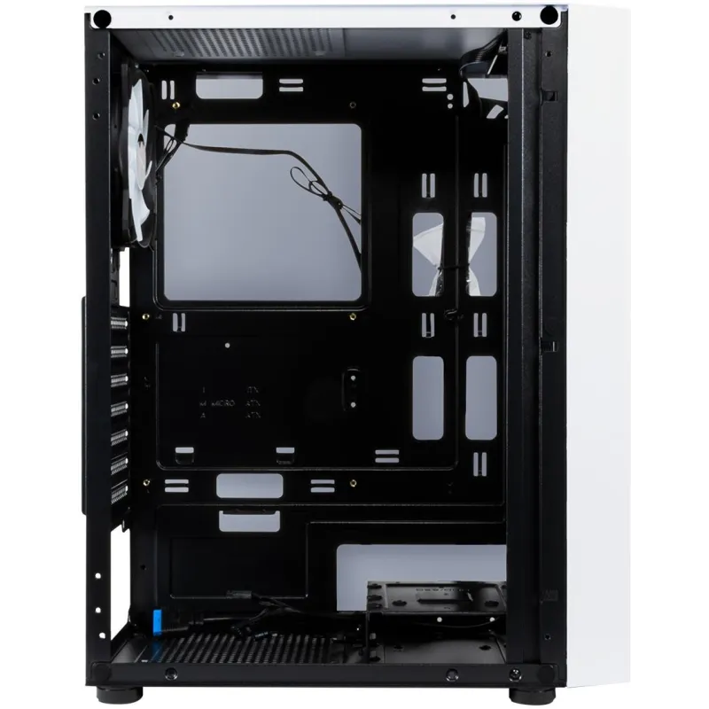 DISEÑO SOFISTICADO Y RESISTENTE: Este modelo de torre está construido con materiales de alta calidad, como ABS sintéticos, SGCC y vidrio templado. Su color blanco le da una apariencia moderna y elegante, ideal para cualquier configuración de PC. Soporta tarjetas madre ATX, proporcionando flexibilidad para diversos ensamblajes.