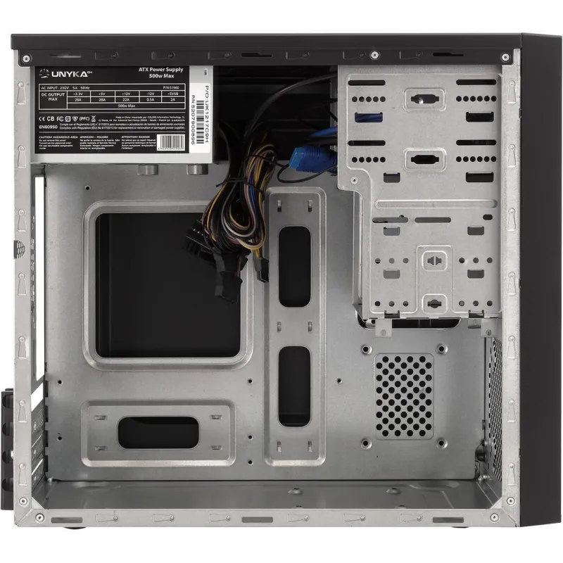 FUENTE DE ALIMENTACIÓN INCLUIDA: Equipada con una fuente de alimentación de 500 W, esta solución asegura un rendimiento constante y fiable. Compatible con factores de forma ATX, facilita la integración de componentes adicionales sin comprometer la estabilidad del sistema. La inclusión de la fuente de alimentación dentro del paquete elimina la necesidad de compras adicionales, ofreciendo una solución completa y lista para su implementación inmediata.