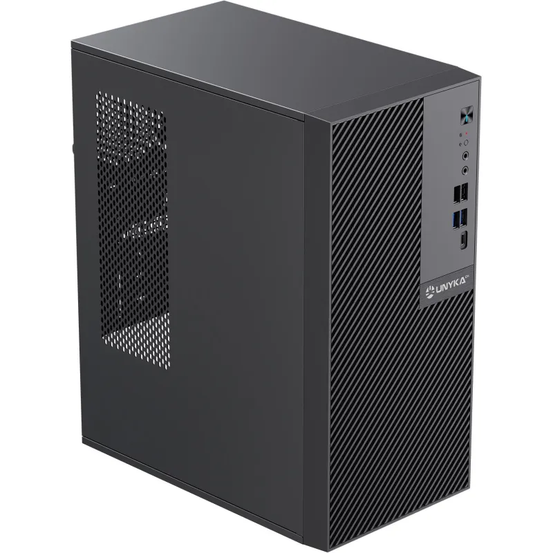 El nuevo chasis de UNYKAch NUMEN 500 PRO TYPE C formato Micro ATX de 17 litros, admite fuente de alimentación en formato ATX estandar, cuenta con 5 puertos USB en total, 2 USB 2.0, 2 USB 3.0 y un USB Type C. Además, su diseño permite colocarla tanto en posición horizontal como vertical, lo que la hace versátil a cualquier espacio y necesidad. Esta caja es compatible con fuentes de alimentación ATX, lo que la hace una excelente opción para proyectos que requieren una fuente de alimentación mas potente o menos . Con esta caja, los usuarios podrán disfrutar de un diseño moderno y atractivo, sin sacrificar la funcionalidad ni la conectividad.