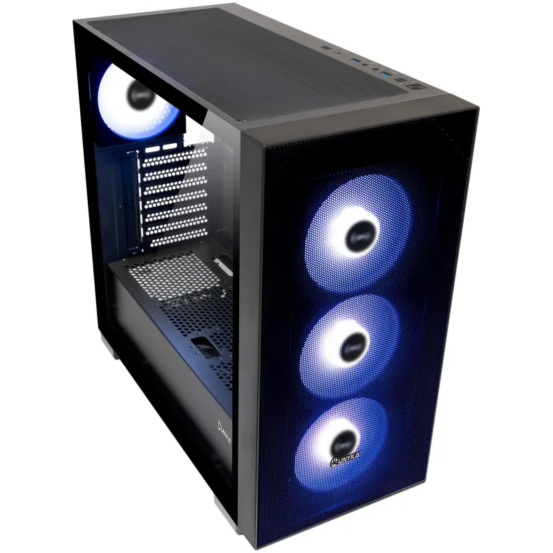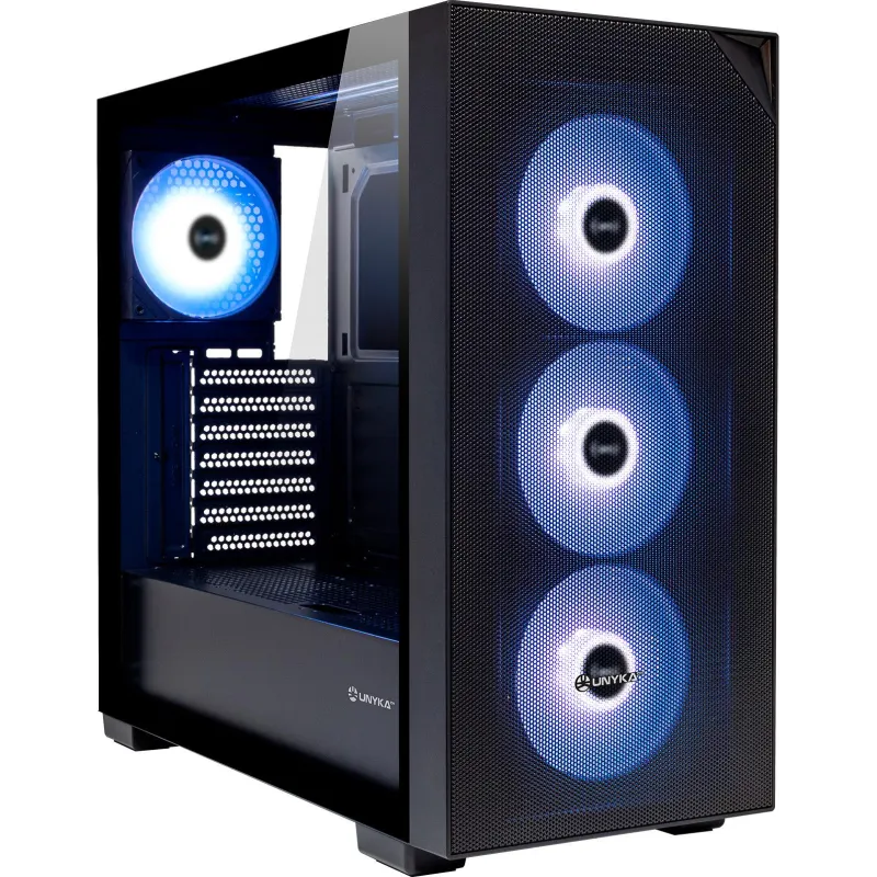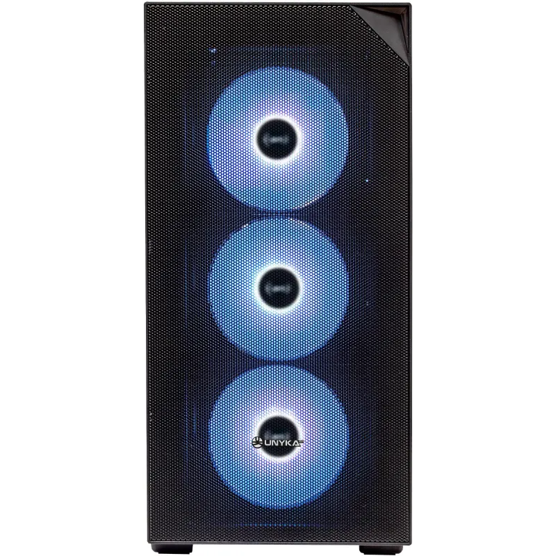 Torre Unykach Caja ATX Revelat MESH Black con panel de vidrio templado, ventiladores 120 mm y diseño compatible con refrigeración líquida