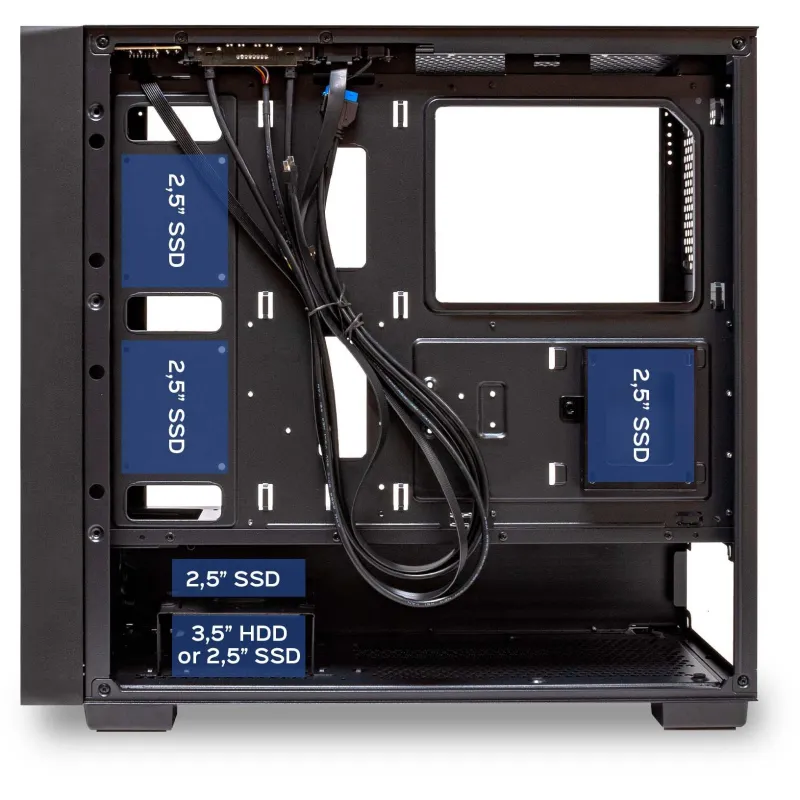 La Unykach Revelat MESH Black ofrece una excelente capacidad interna, admitiendo tarjetas gráficas de hasta 42,5 cm y disipadores de CPU de hasta 17 cm. Su diseño permite instalar placas base ATX y micro ATX y cuenta con 7 ranuras de expansión para una configuración versátil. Además, incluye bahías para discos duros de 2,5 y 3,5 pulgadas, facilitando la gestión del almacenamiento. Gracias a su estructura inteligente y su amplio espacio interior, esta torre permite montar sistemas potentes sin restricciones, ideal para usuarios exigentes que buscan rendimiento y orden.