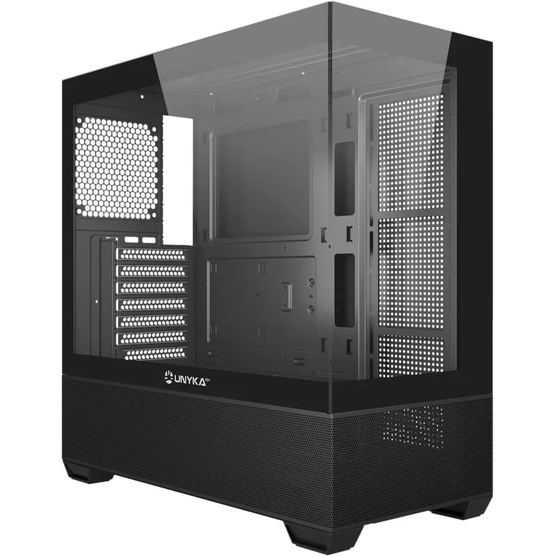 Torre UNYKAch Revelat Mid Tower ATX Doble Cristal Templado USB-C 7 Ventiladores Soportados Trasero, Laterales y Superiores Negra