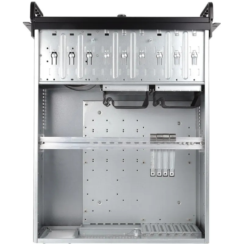 DISEÑO ELEGANTE Y ROBUSTO: El acabado en SGCC proporciona una resistencia notable y una longevidad que supera las expectativas. Este modelo, concebido para ser montado en estantes, exhibe una estructura imponente en color negro, ideal para entornos profesionales y de alto rendimiento. Su compatibilidad con tarjetas madre ATX y su disposición para hasta ocho unidades de 3.5" y tres de 5.25" aseguran una flexibilidad sin igual, permitiendo configuraciones personalizadas según las necesidades específicas del usuario. Las ranuras de expansión suman hasta siete, permitiendo una ampliación considerable del sistema, mientras que su capacidad de rack de 4U hace que la integración en sistemas existentes sea sencilla y eficiente. Aunque no cuenta con ventana lateral, el diseño incluye un filtro anti-polvo que garantiza un funcionamiento óptimo y prolongado, manteniendo los componentes internos libres de contaminantes.