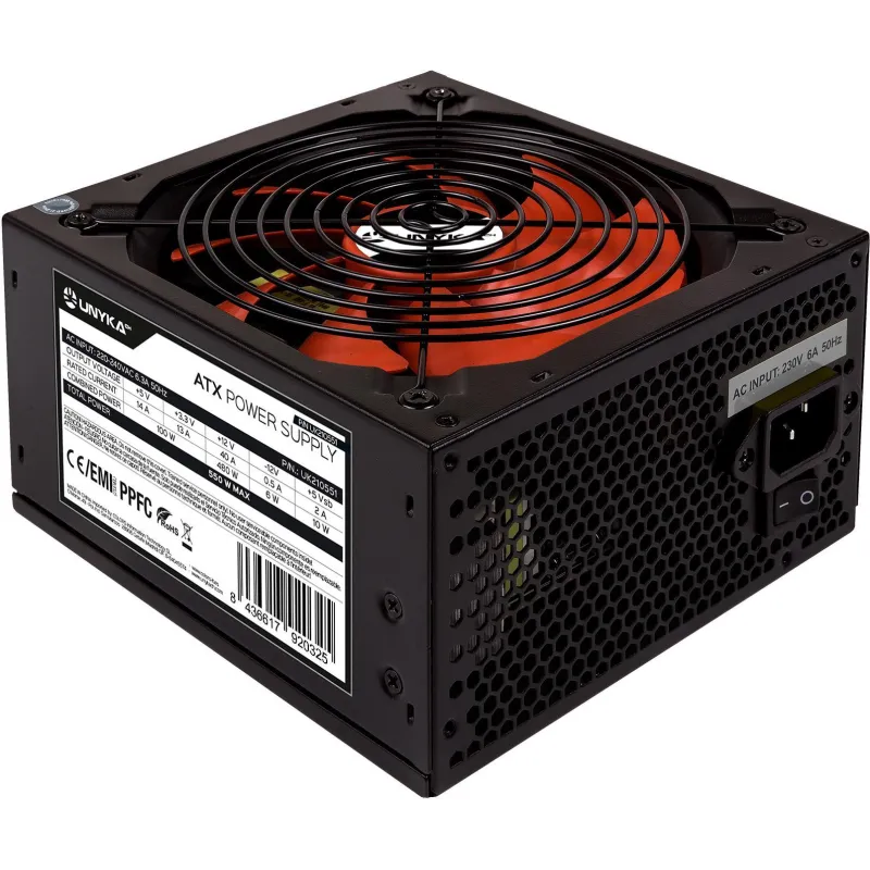 Unykach UK210551 Fuente de 550W con Formato ATX, Voltaje de entrada de 230 V, Frecuencia de 50 Hz