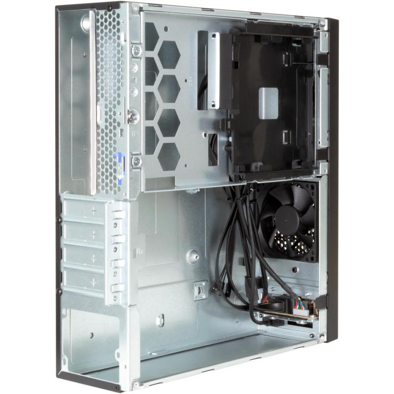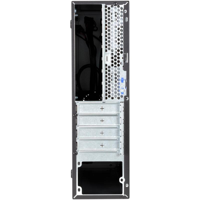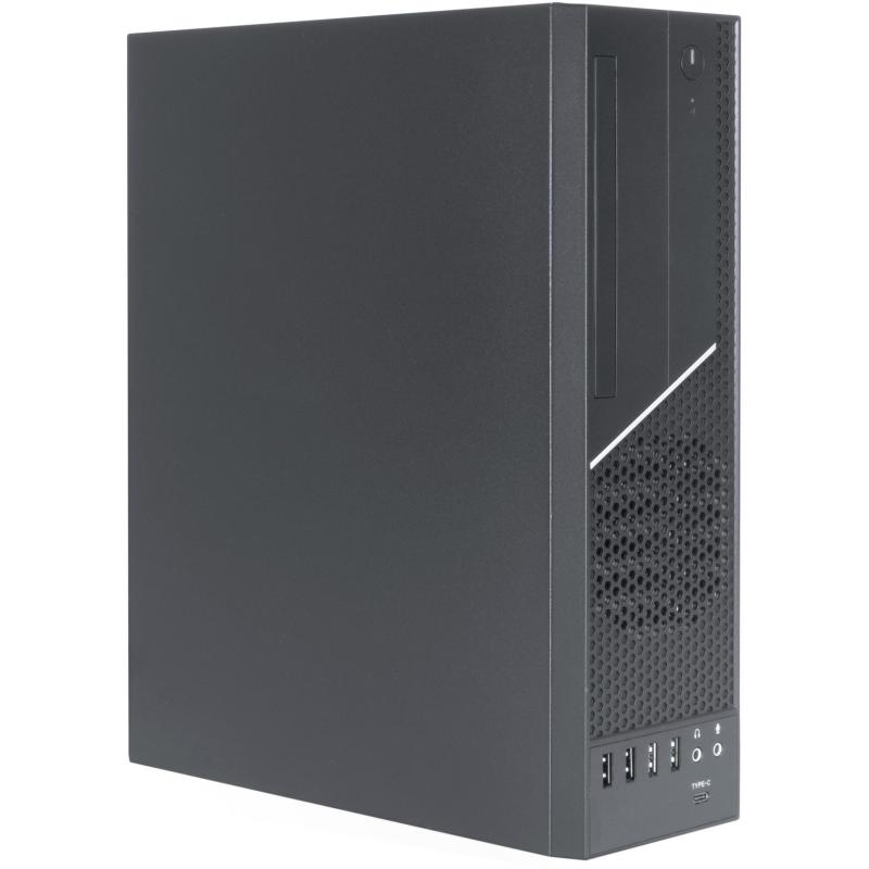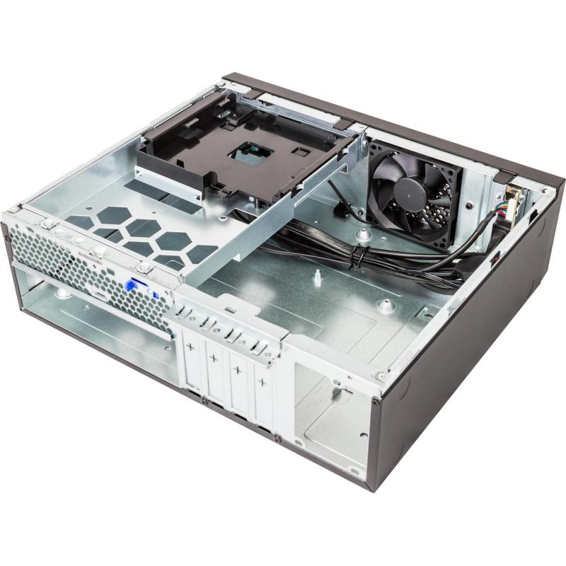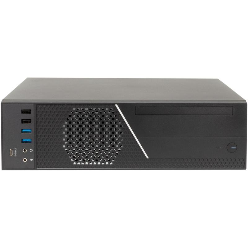 El gabinete tiene un ventilador frontal de 80 mm preinstalado, con soporte para uno adicional, proporcionando un enfriamiento eficiente para mantener tus componentes en óptimas condiciones. Su diseño compacto permite una altura máxima de CPU de 4.5 cm y una longitud máxima de tarjeta gráfica de 22 cm, lo que lo hace ideal para configuraciones potentes en espacios reducidos.