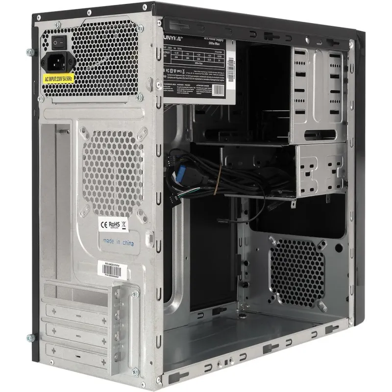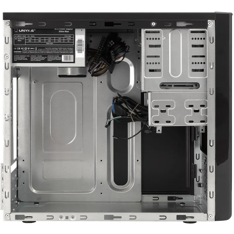 FUENTE DE ALIMENTACIÓN INTEGRADA: Equipado con una fuente de alimentación de 500 W, este sistema garantiza un suministro energético estable y eficiente para todos sus componentes. Compatible con factores de forma ATX, facilita su integración en diversas configuraciones de hardware, proporcionando la potencia necesaria para soportar tareas exigentes y mantener un rendimiento óptimo en todo momento.