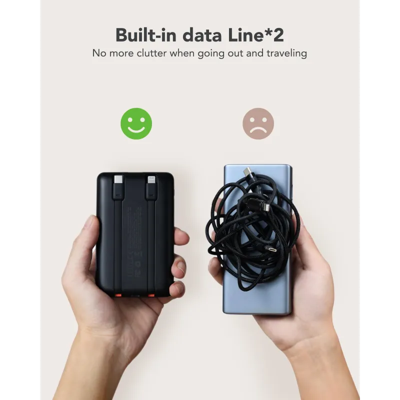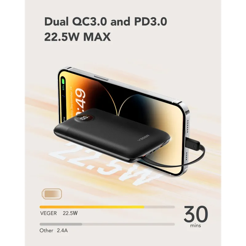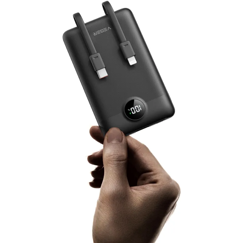 Veger C11 VG-W1170 10000mAh Negro PD22.5W Cables Integrados LCD Rápida