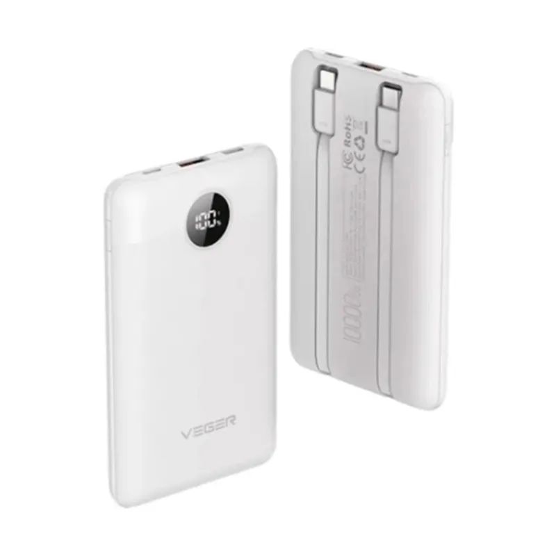 Veger C11 VG-W1170-W 10000mAh Blanco PD22.5W Cables Integrados LCD Rápida