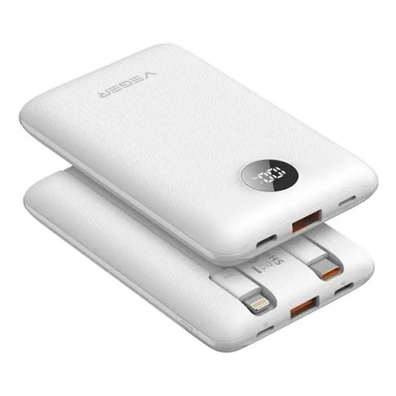 Powerbank Veger C11 VG-W1170-W batería externa compacta de 10000 mAh con carga rápida y cables integrados para mantener tu móvil a punto en cualquier sitio.
