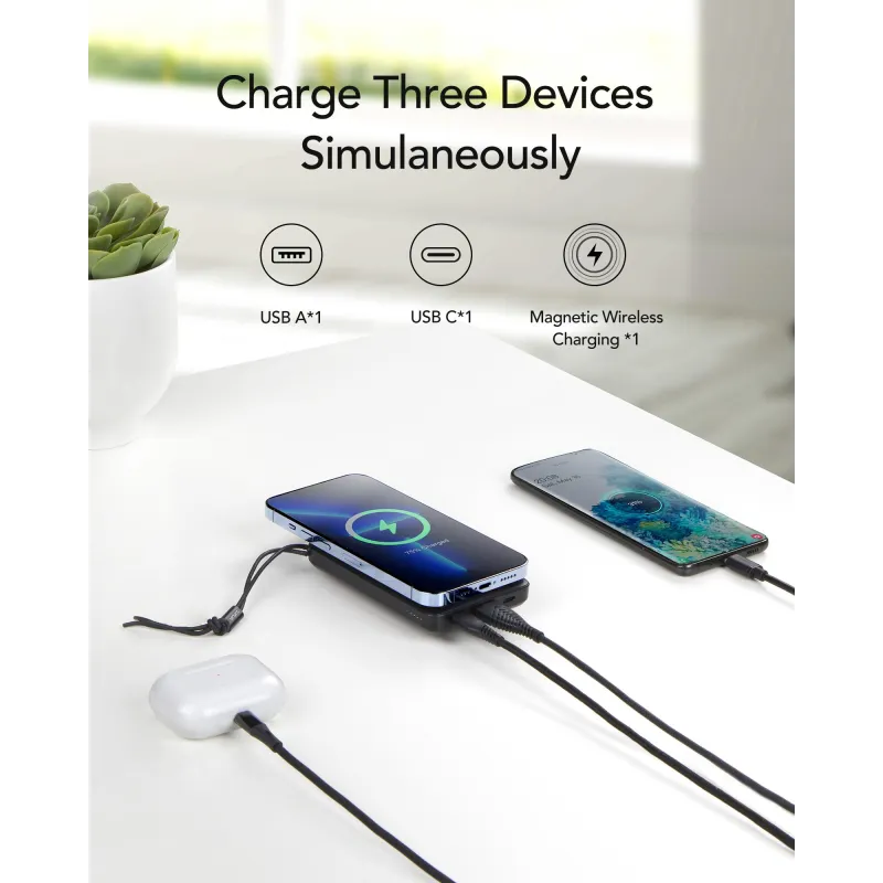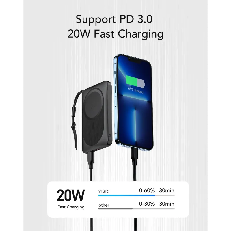 Veger MagOn W1151-B 10000mAh Carga Rápida PD20W MagSafe Inalámbrica