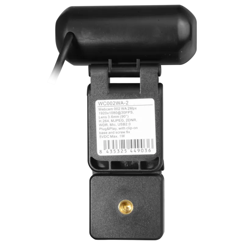 Webcam Visiotech WC002WA-2 con sensor CMOS 1/2.7 pulgadas, resolución 1080P 25 FPS, lente de 3.6 mm, micrófono estéreo y conexión USB 2.0.