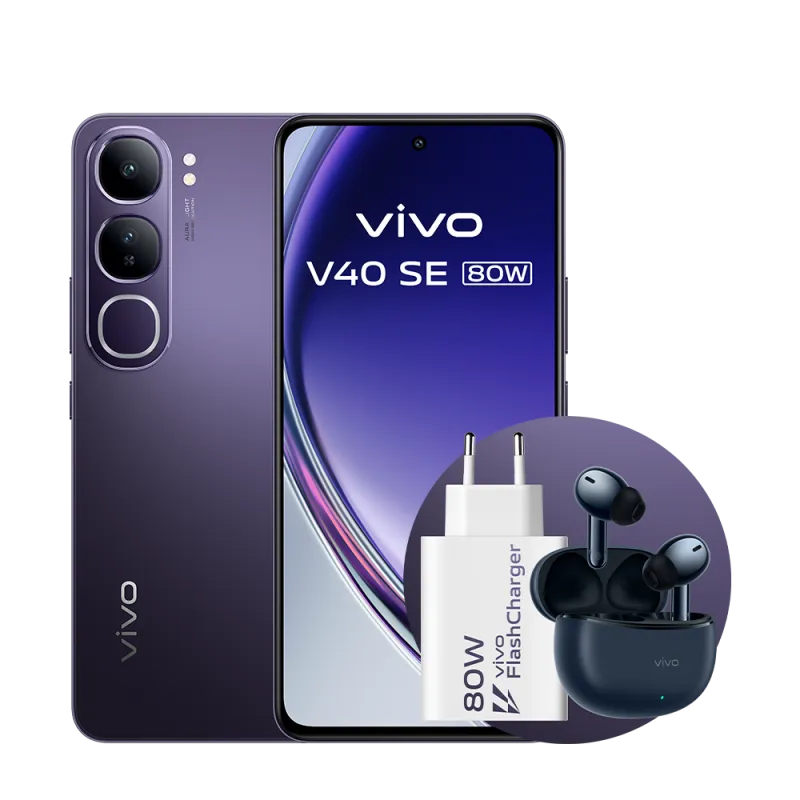 Smartphone Vivo V40 SE 80W con pantalla AMOLED 6.67" 120Hz, 8GB RAM, 256GB, batería 5000mAh y carga rápida 80W. Potencia y fluidez en un diseño elegante