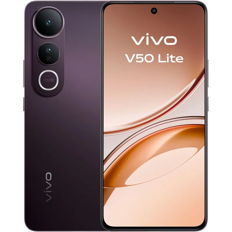 Smartphone Vivo V50 Lite con pantalla de 6.77" cámara de 50 MP 8 GB RAM batería de 6500 mAh y Android 15 Potente elegante y eficiente.
