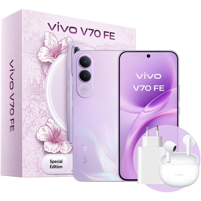 Vivo V70 FE 5G 8GB/512GB Púrpura y Vivo Buds Púrpuras