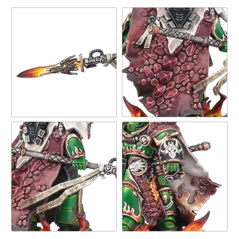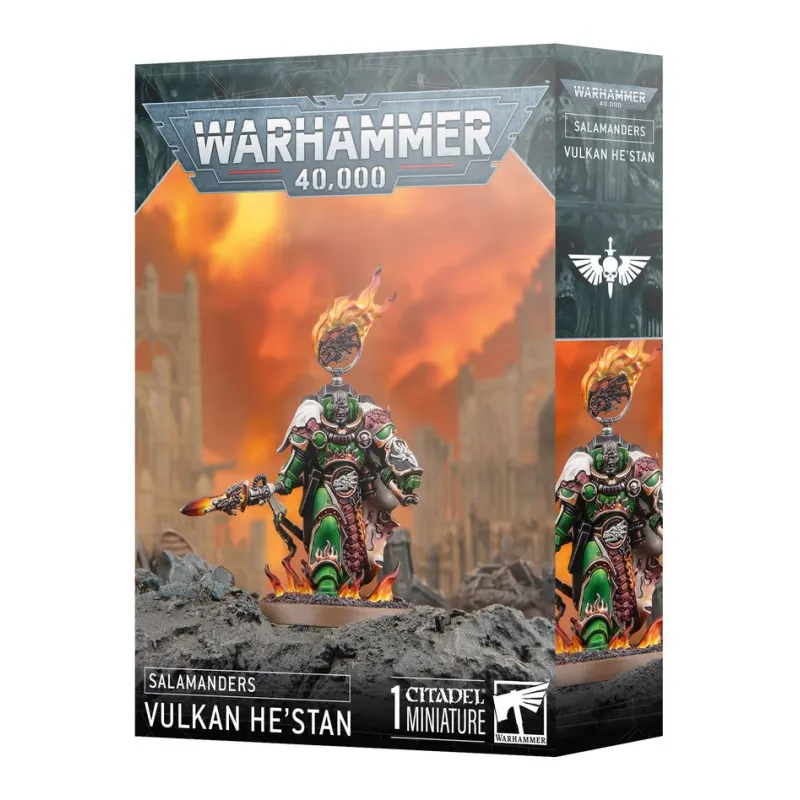 Vulkan He’stan es el comandante ideal para cualquier ejército de Salamanders en Warhammer 40.000. Su figura impone respeto y liderazgo, mientras que su trasfondo como Guardián de las Reliquias le otorga una profundidad narrativa única. Equipado con el Guantelete de la Forja, puede incinerar escuadrones enemigos en un instante, y su Lanza de Vulkan le permite acabar con cualquier amenaza en combate cuerpo a cuerpo. Esta miniatura no solo destaca por su capacidad táctica, sino también por su detallado diseño, que incluye texturas como escamas y fuego, convirtiéndola en una pieza central tanto en el juego como en la colección.