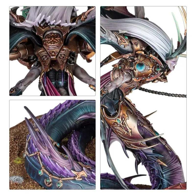 Beneficios clave: presencia de Primarca en mesa, miniatura de gran tamaño, abundantes detalles para pintores avanzados, estética icónica de Slaanesh, armadura ornamentada, pose dinámica, base escénica elaborada, ideal como pieza central de ejército, perfecta para vitrinas de exposición, proyecto de pintura exigente, compatible con listas temáticas del Caos, alto valor coleccionista