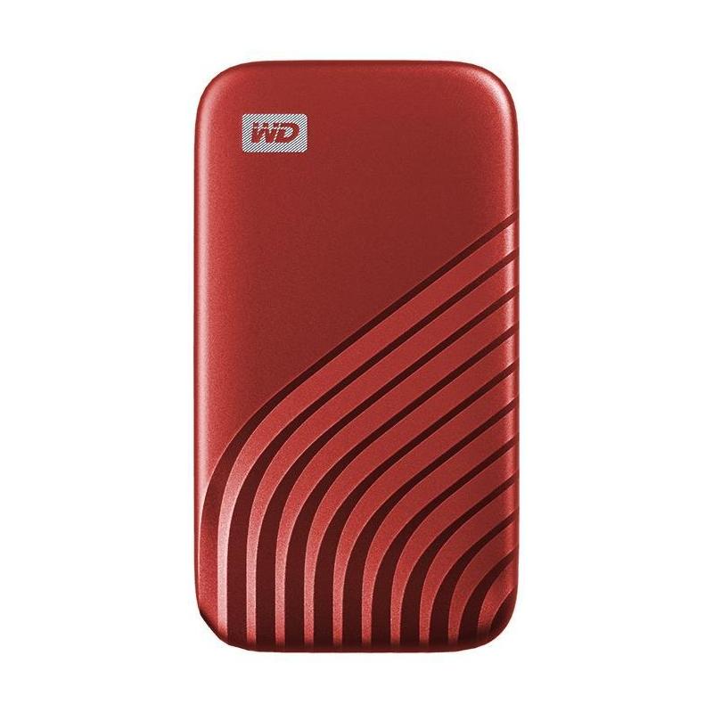Disco Duro SSD Externo WD My Passport SSD 500GB USB-C Rojo, almacena y transfiere datos a 1050 MB/s con USB-C. Diseño compacto seguro y elegante.