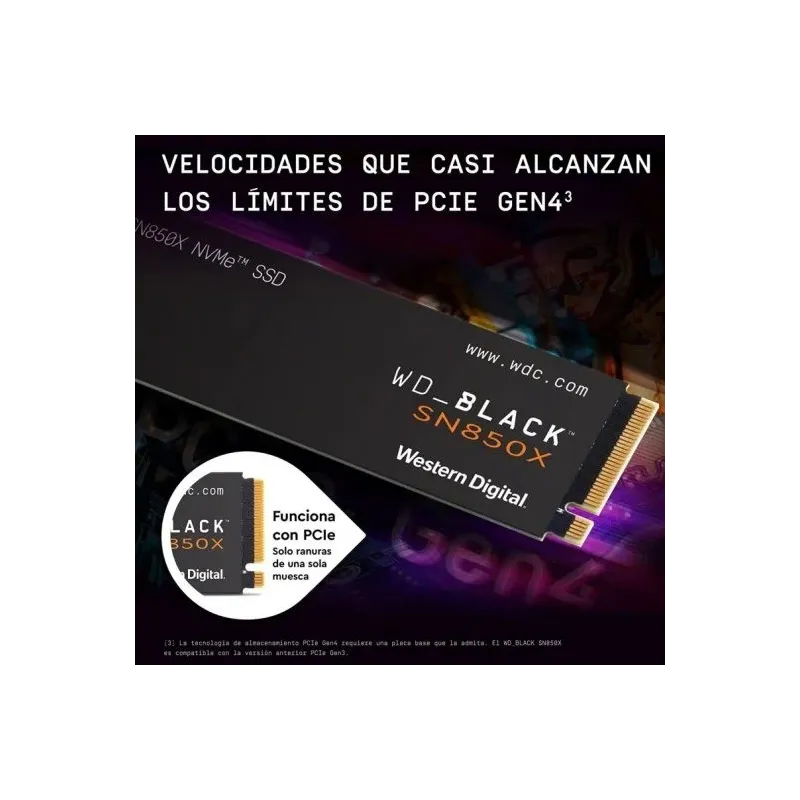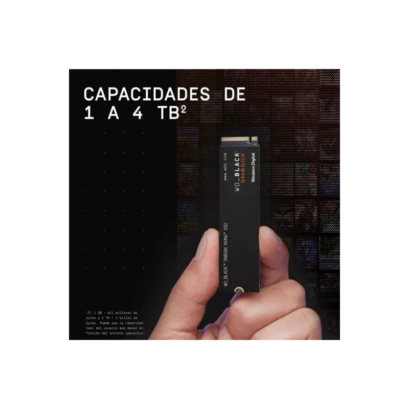LA VENTAJA DEFINITIVA: Prepárate para una velocidad de juego vertiginosa con el WD_BLACK™ SN850X NVMe™ SSD. Disfruta de tiempos de carga impresionantes y reduce las ralentizaciones, los retrasos y las apariciones repentinas de elementos para obtener una experiencia fluida y rápida que te permite competir dando lo máximo de ti. Este disco diseñado para juegos está disponible en capacidades de 1 a 4 TB, con un disipador de calor opcional en los discos de 1 y 2 TB que ayuda a lograr un rendimiento de primer nivel para una experiencia de juego más consistente. Con las funciones avanzadas del Modo para Juegos 2.0 (solo para Windows®), junto con una velocidad que se acerca a los límites de la interfaz PCIe® Gen4, el WD_BLACK SN850X NVMe SSD ofrece un rendimiento de primer nivel para que puedas seguir jugando, transmitiendo partidas, grabando y dominando el juego.