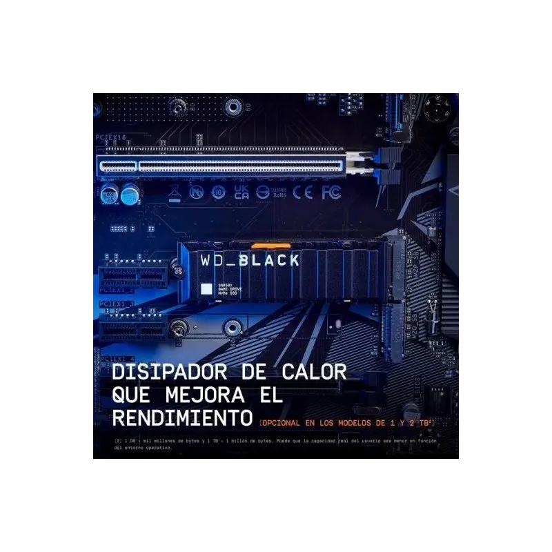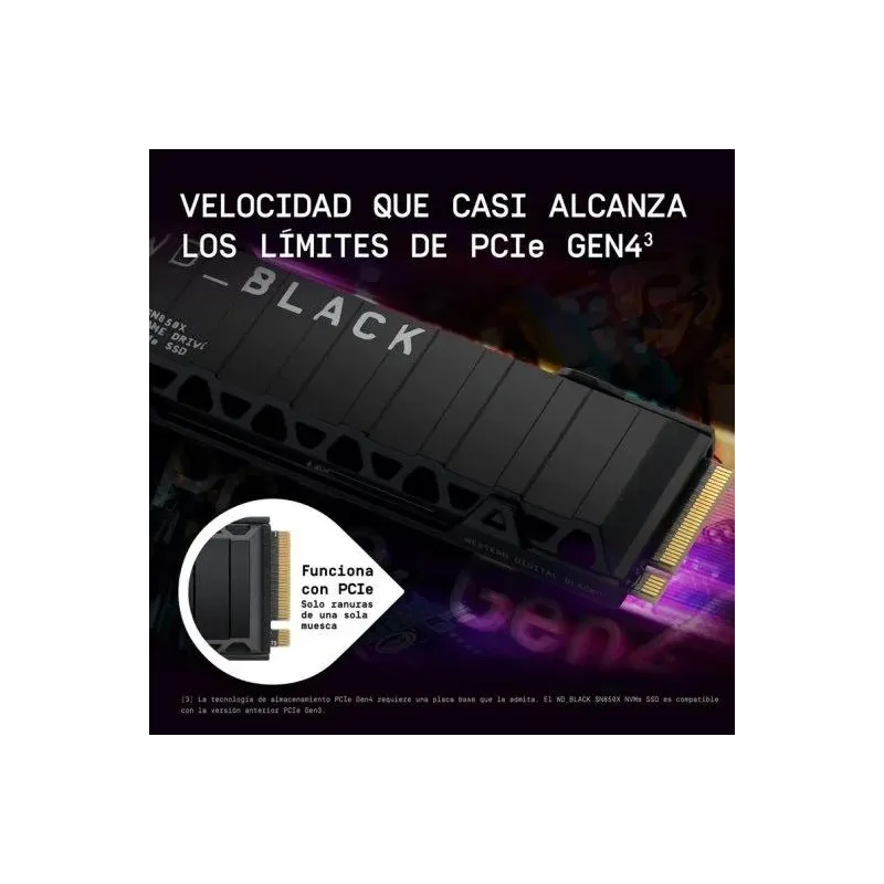 GANA CON EL DISIPADOR DE CALOR: Los discos WD_BLACK SN850X NVMe™ SSD de 1 y 2 TB cuentan con una versión con disipador de calor opcional que no solo tiene una cuidada estética, sino que también ayuda a mantener el máximo rendimiento de tu ordenador en las sesiones de juego más intensas.