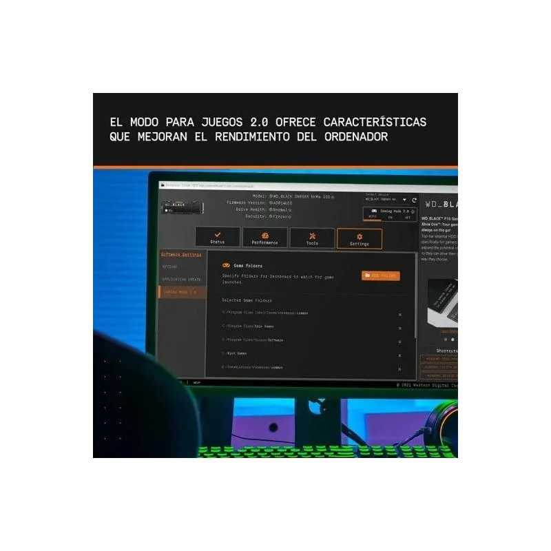 LA VENTAJA DEFINITIVA: Prepárate para una velocidad de juego vertiginosa con el WD_BLACK™ SN850X NVMe™ SSD. Disfruta de tiempos de carga impresionantes y reduce las ralentizaciones, los retrasos y las apariciones repentinas de elementos para obtener una experiencia fluida y rápida que te permite competir dando lo máximo de ti. Este disco diseñado para juegos está disponible en capacidades de 1 a 4 TB, con un disipador de calor opcional en los discos de 1 y 2 TB que ayuda a lograr un rendimiento de primer nivel para una experiencia de juego más consistente. Con las funciones avanzadas del Modo para Juegos 2.0 (solo para Windows®), junto con una velocidad que se acerca a los límites de la interfaz PCIe® Gen4, el WD_BLACK SN850X NVMe SSD ofrece un rendimiento de primer nivel para que puedas seguir jugando, transmitiendo partidas, grabando y dominando el juego.