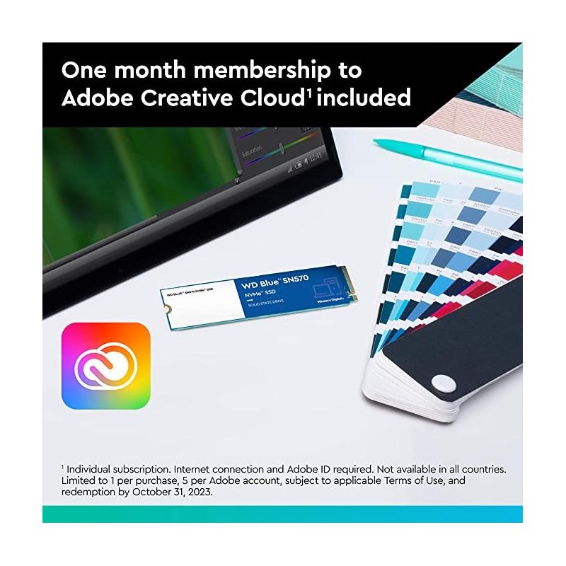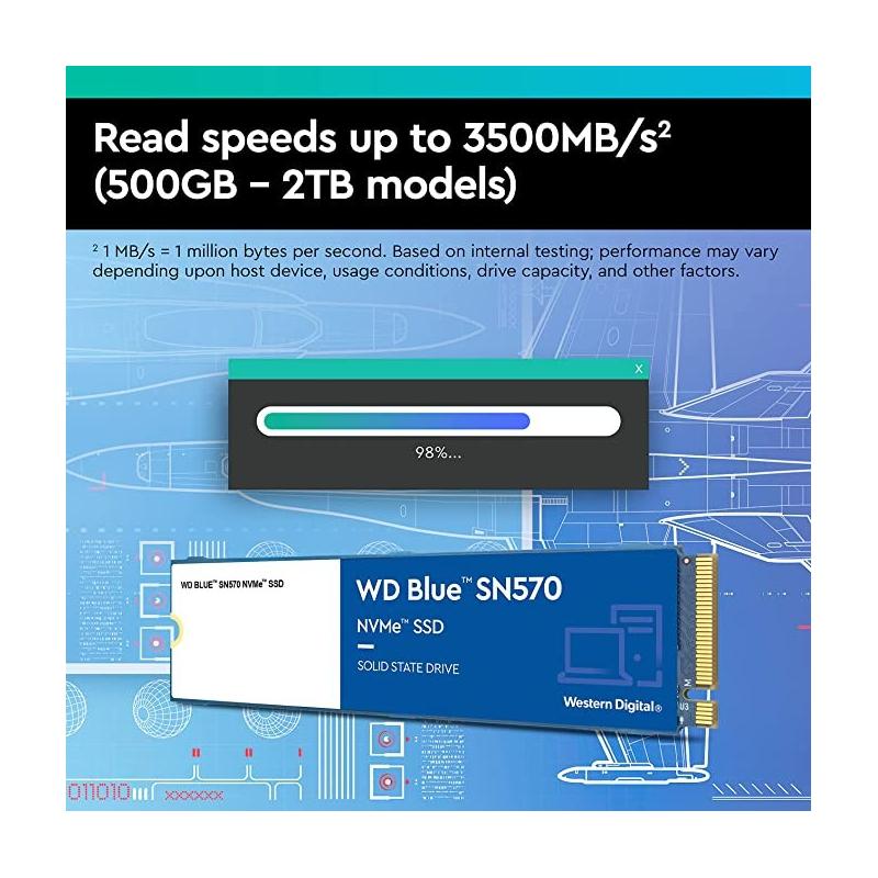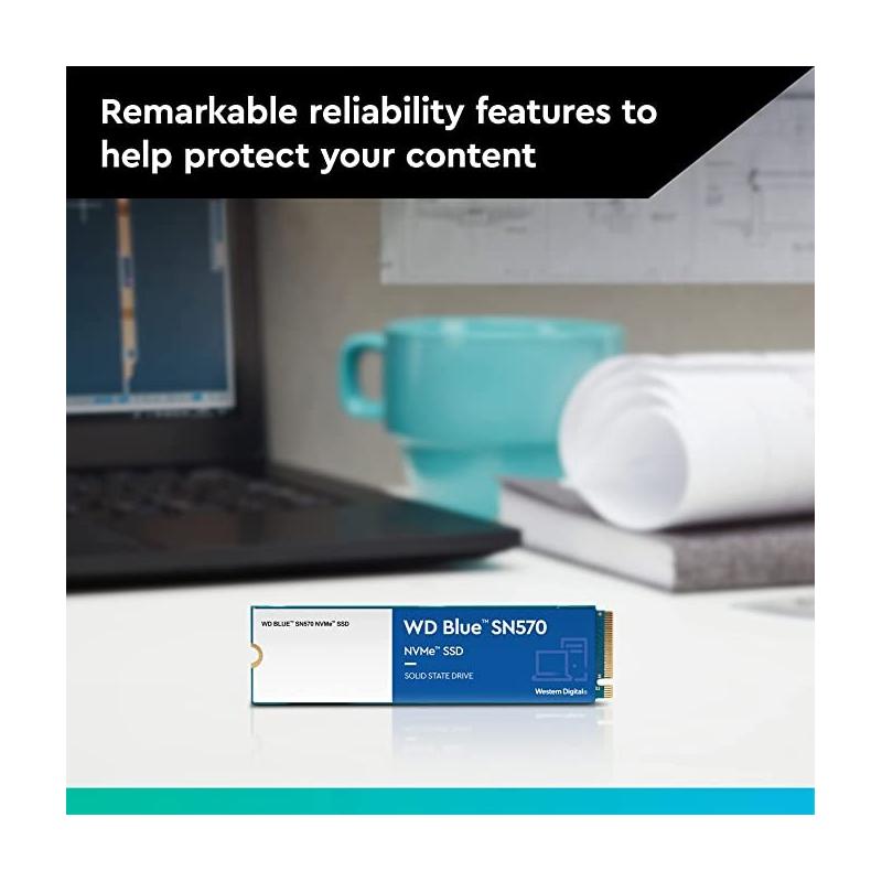 DESPIERTA TU IMAGINACIÓN—INSPIRA TU CREATIVIDAD: Mantente en el momento y crea más allá de tus expectativas con el WD Blue SN570 NVMe SSD. Este potente disco interno ofrece hasta 5 veces la velocidad de nuestros mejores SSD SATA, para que puedas dejar fluir tu imaginación y preocuparte menos por el retraso o los tiempos de carga de tu PC.