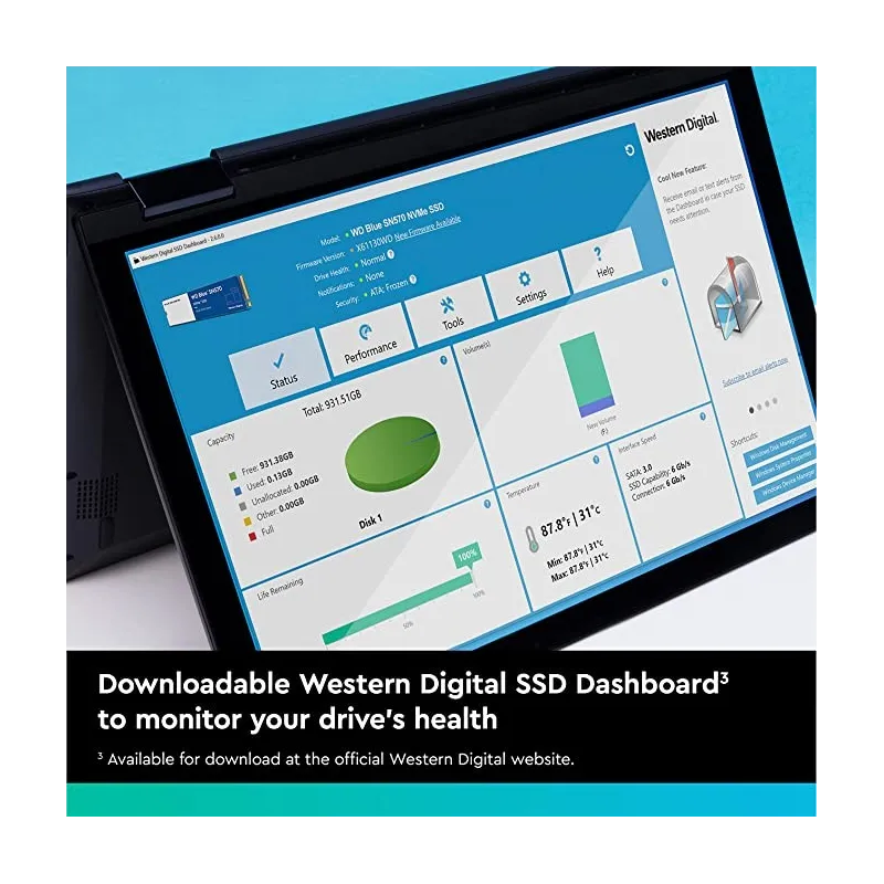OBTENGA MAYOR TRANQUILIDAD TRABAJE: Con mayor confianza y mantenga sus proyectos en orden con el Western Digital SSD Dashboard 2 descargable que lo ayuda a monitorear el estado de su disco, el espacio disponible, la temperatura y más.